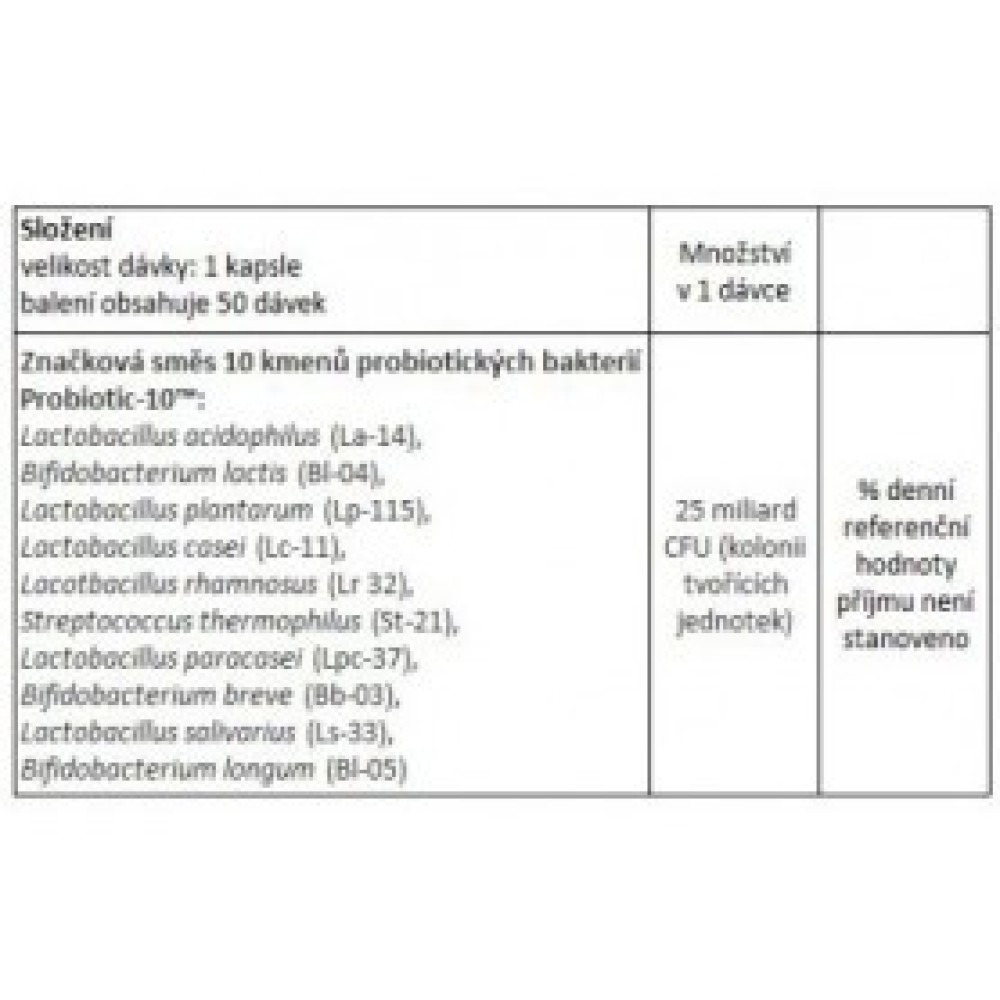 | Dosis (médica) | Por lo general, entre 1 y 10 mil millones de UFC (unidades formadoras de colonias) al día. |